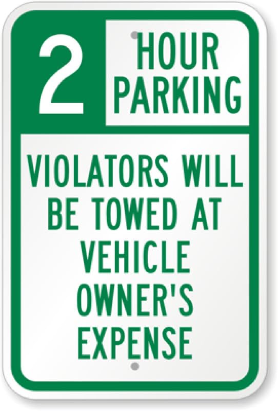 2 Hour Parking Aluminum Weatherproof Sign p00014