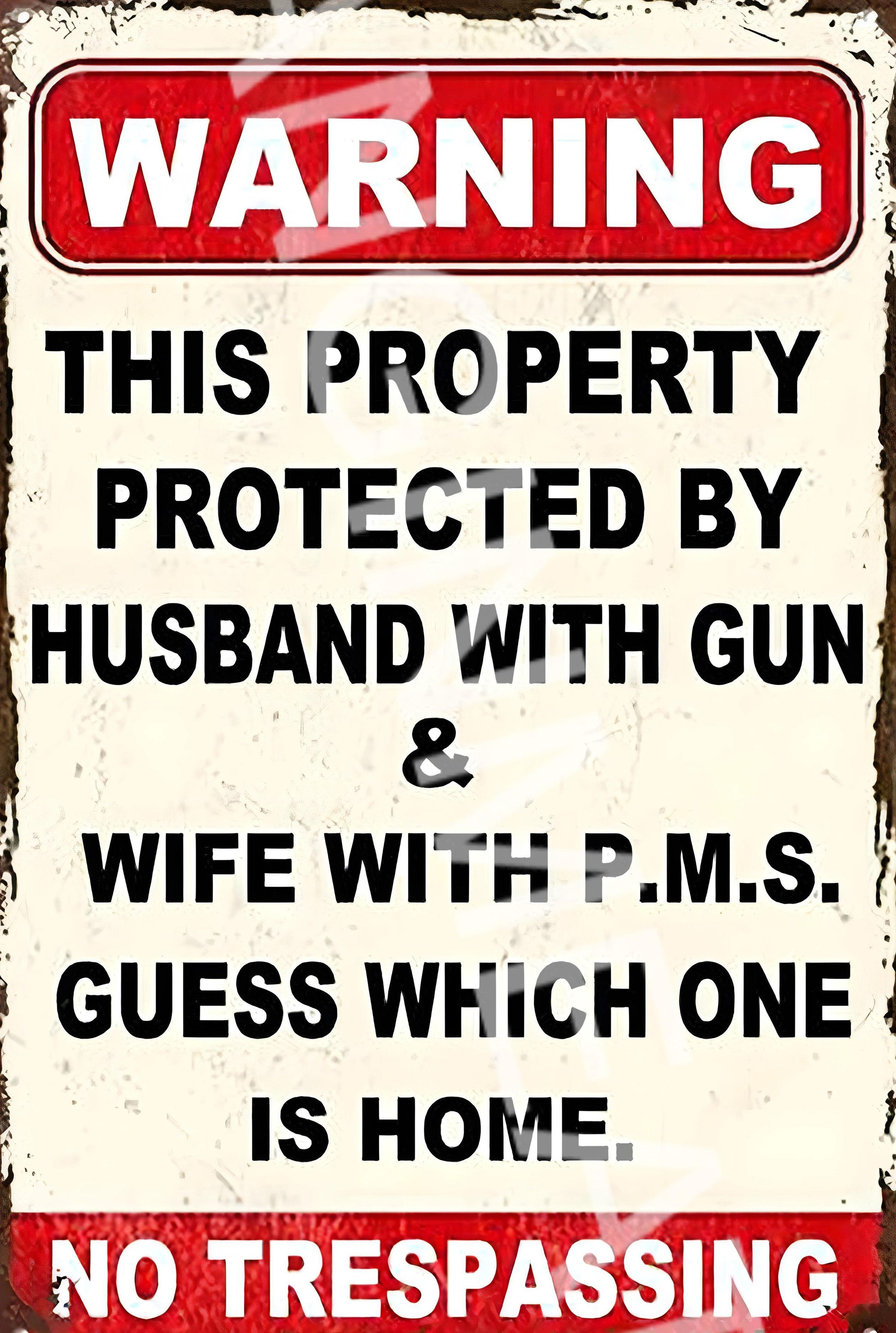 Protected By Wife With PMS Funny Aluminum Metal Sign